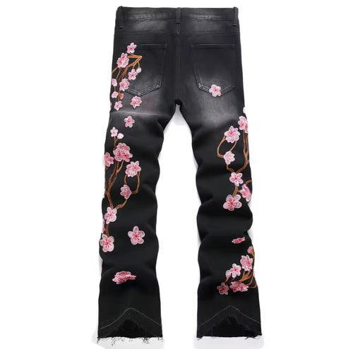 ROMWE MEN Street Life Spring Casual Graphic Men'S Fashion Street Style Rhinestone Cross Graphic Slant Pocket Denim Jeans